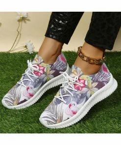 Wholesale 💯 PAOTMBU White & Pink Flamingo Floral 👟 Sneaker – 👩 Women 🎉