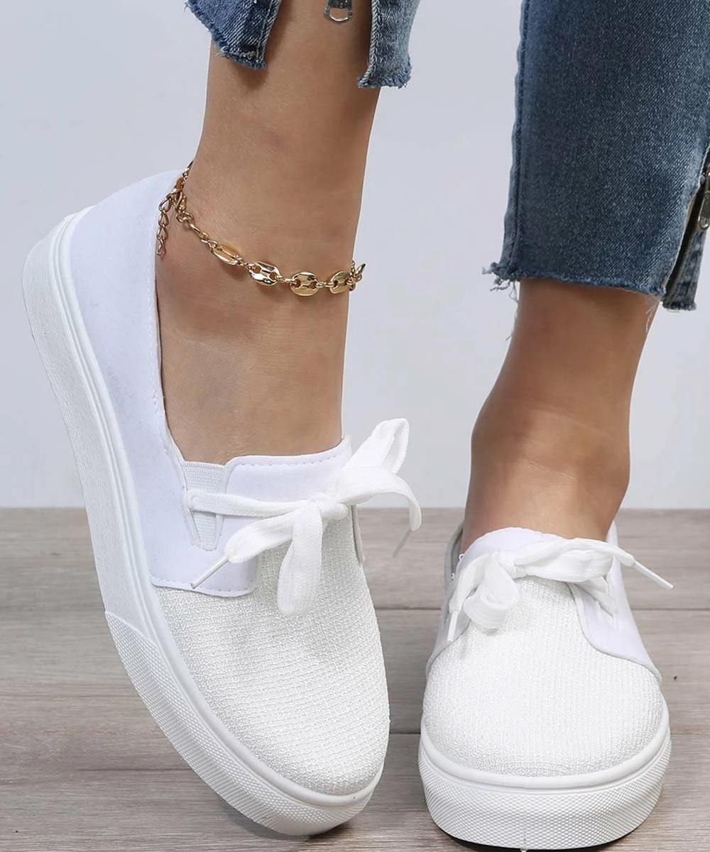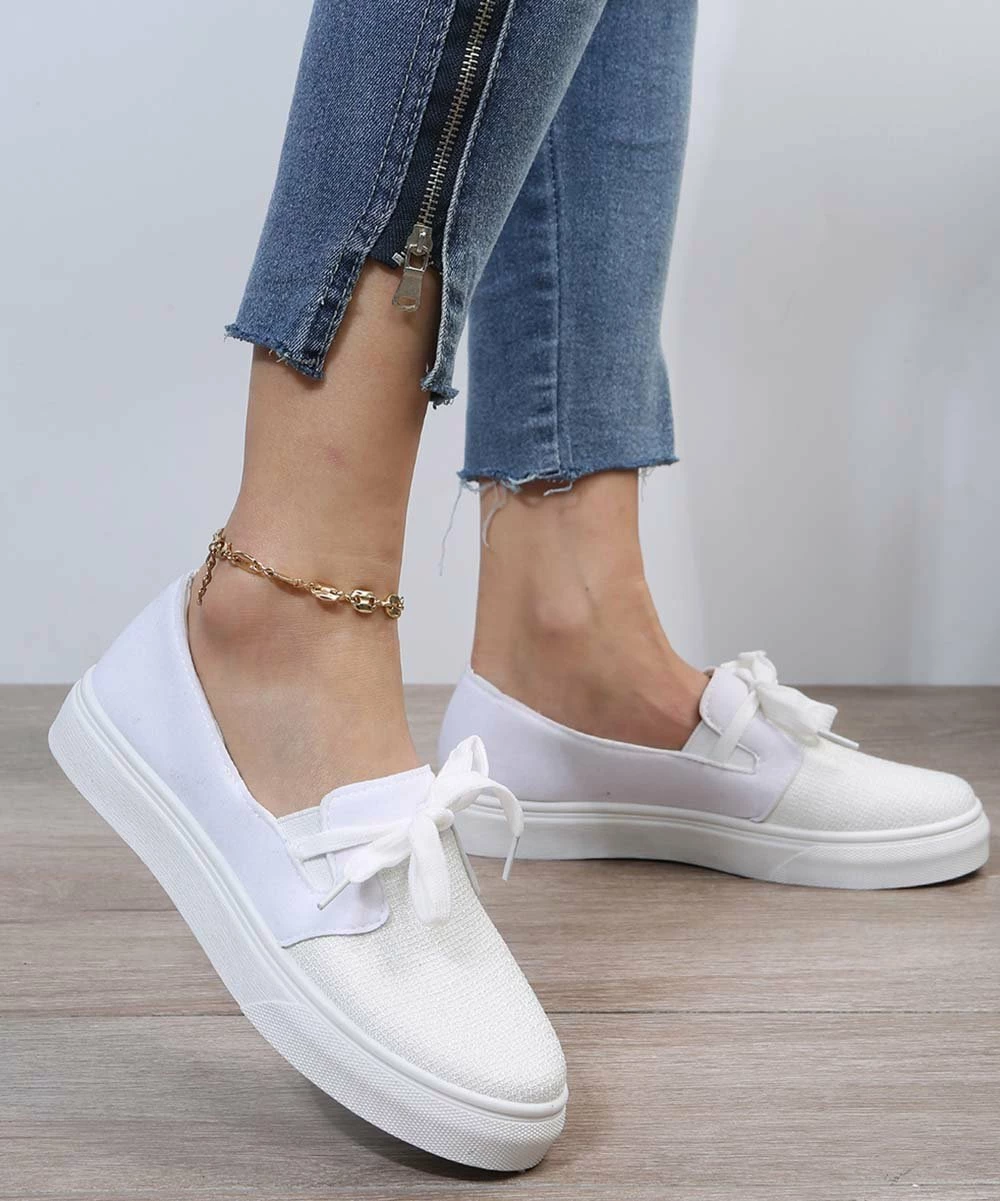 Keep your looks simple by finishing them off with this pair of slip-on sneakers cast in a match-ready solid hue.