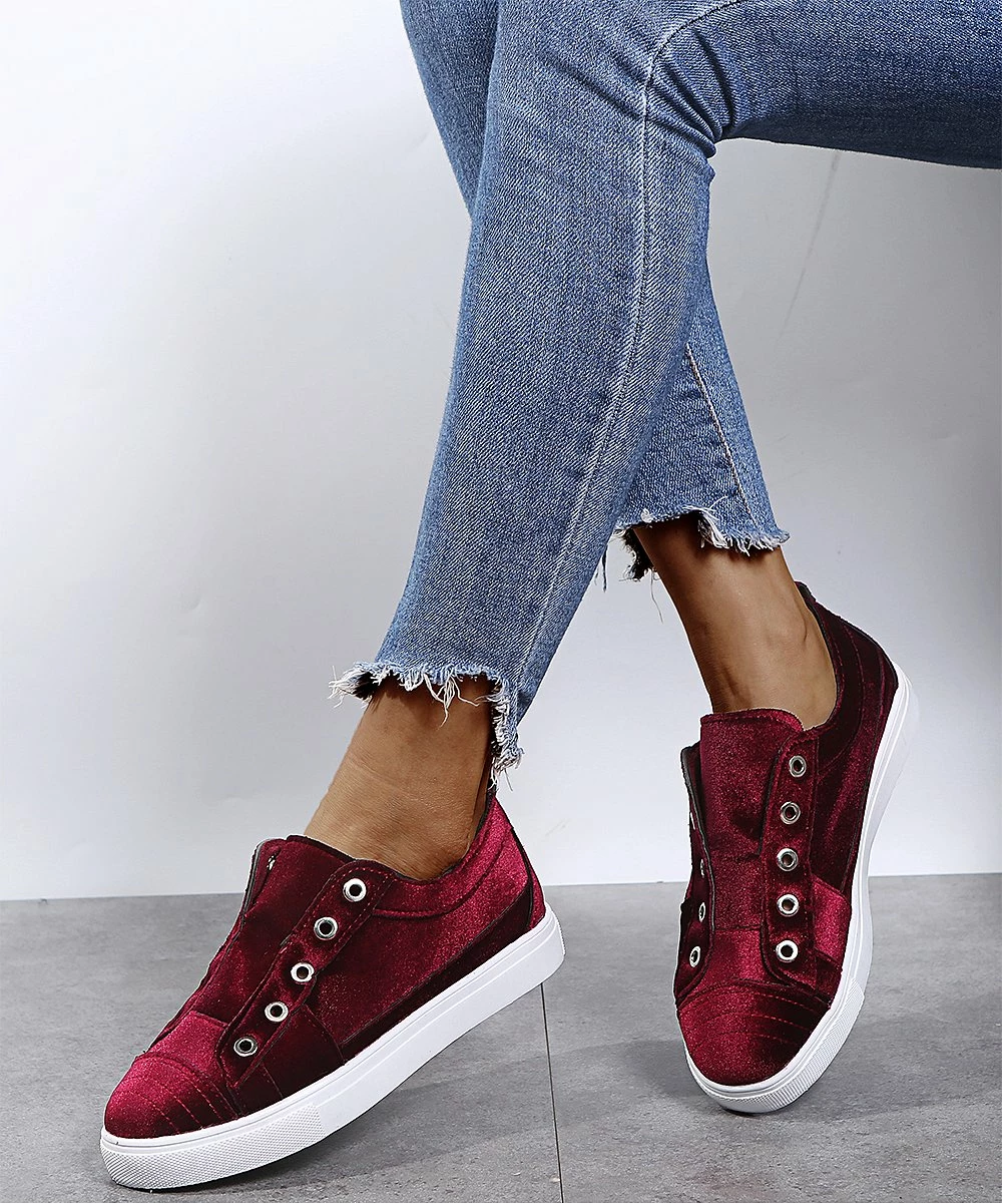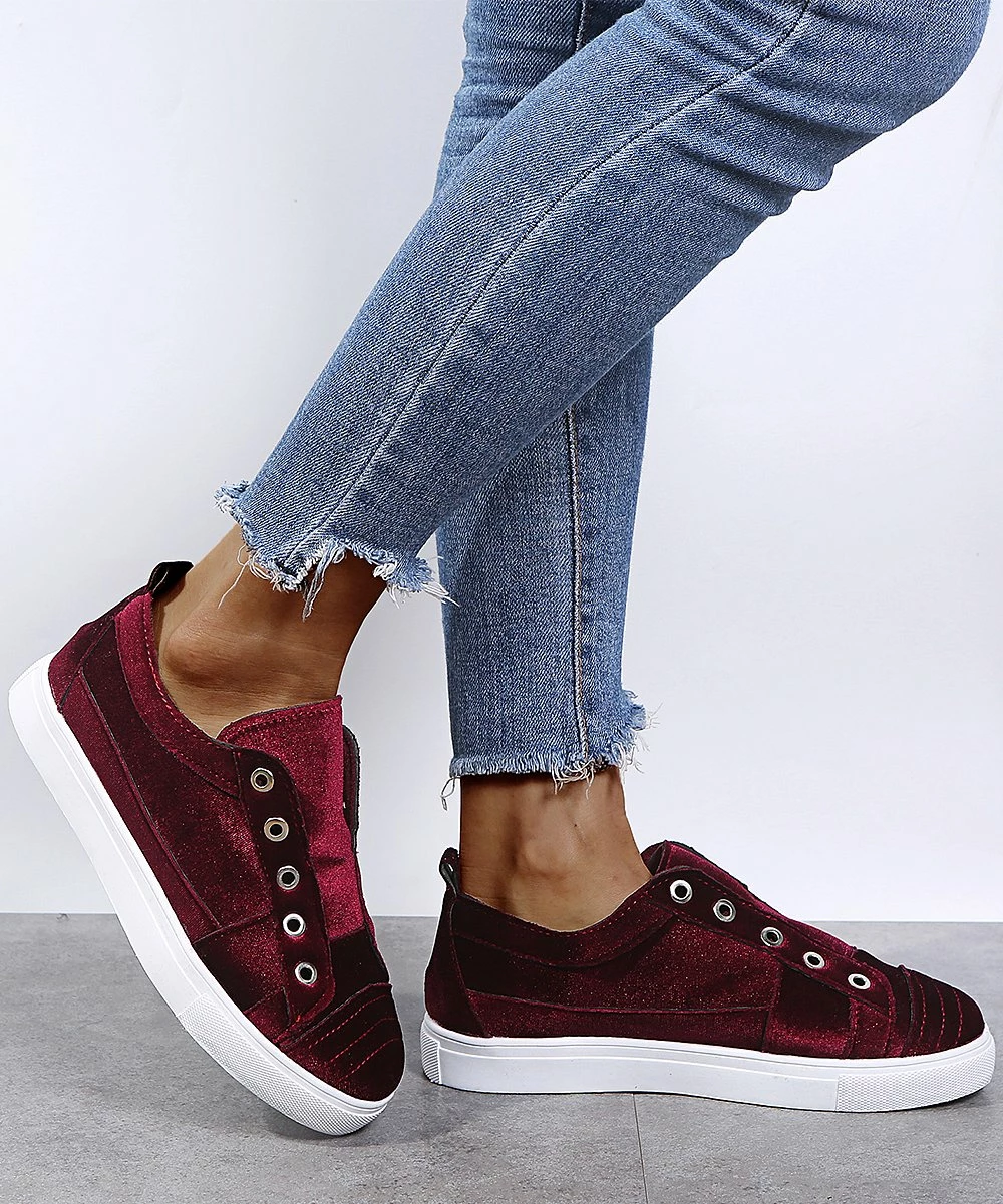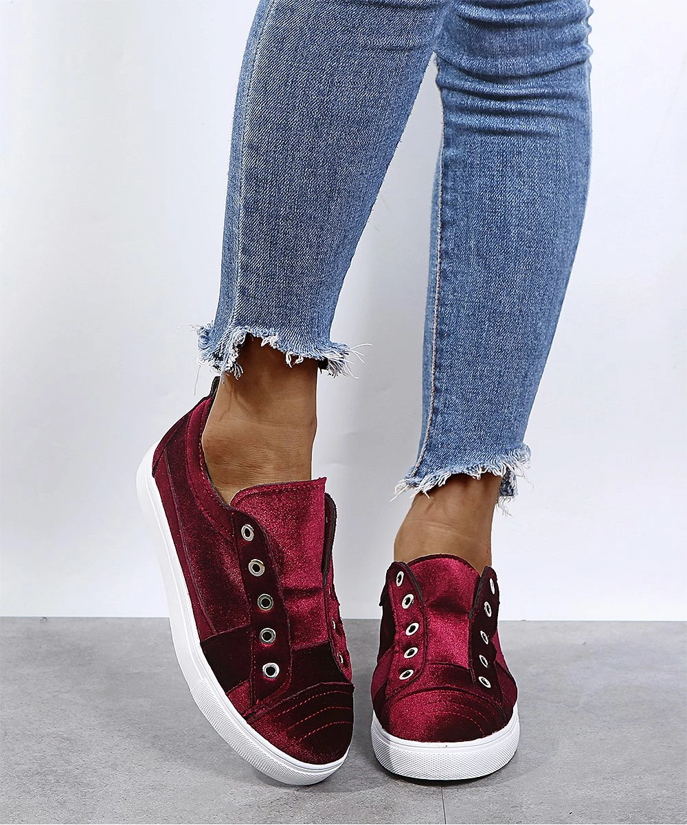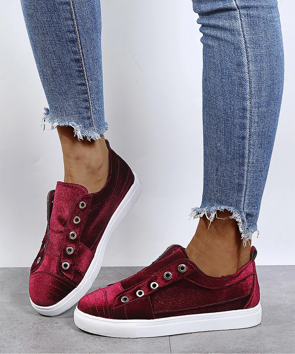 Update your shoe collection with this pair of slip-on sneakers featuring a luxe, soft velvet design and skid-resistant rubber sole.