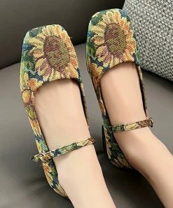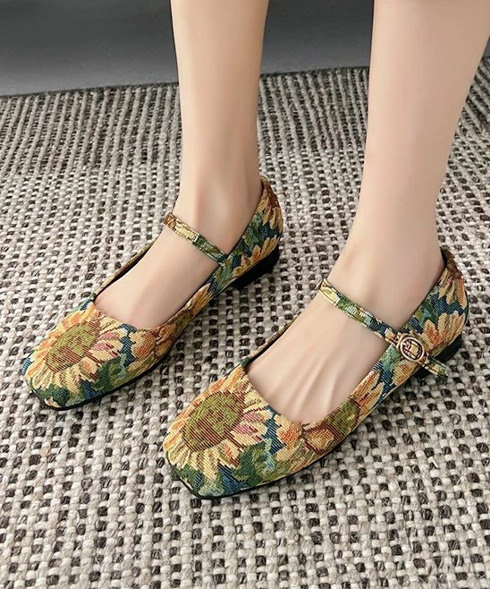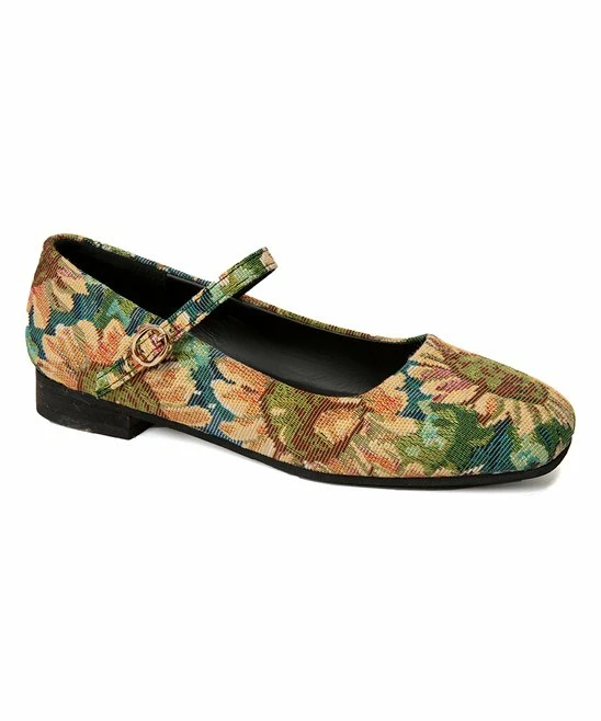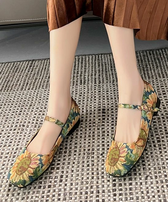 Complete your ensemble with the classic style of these mary janes boasting a charming floral print and a buckle closure.