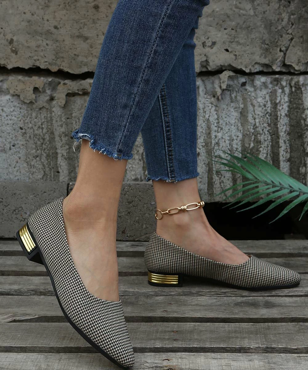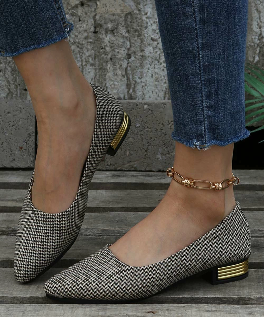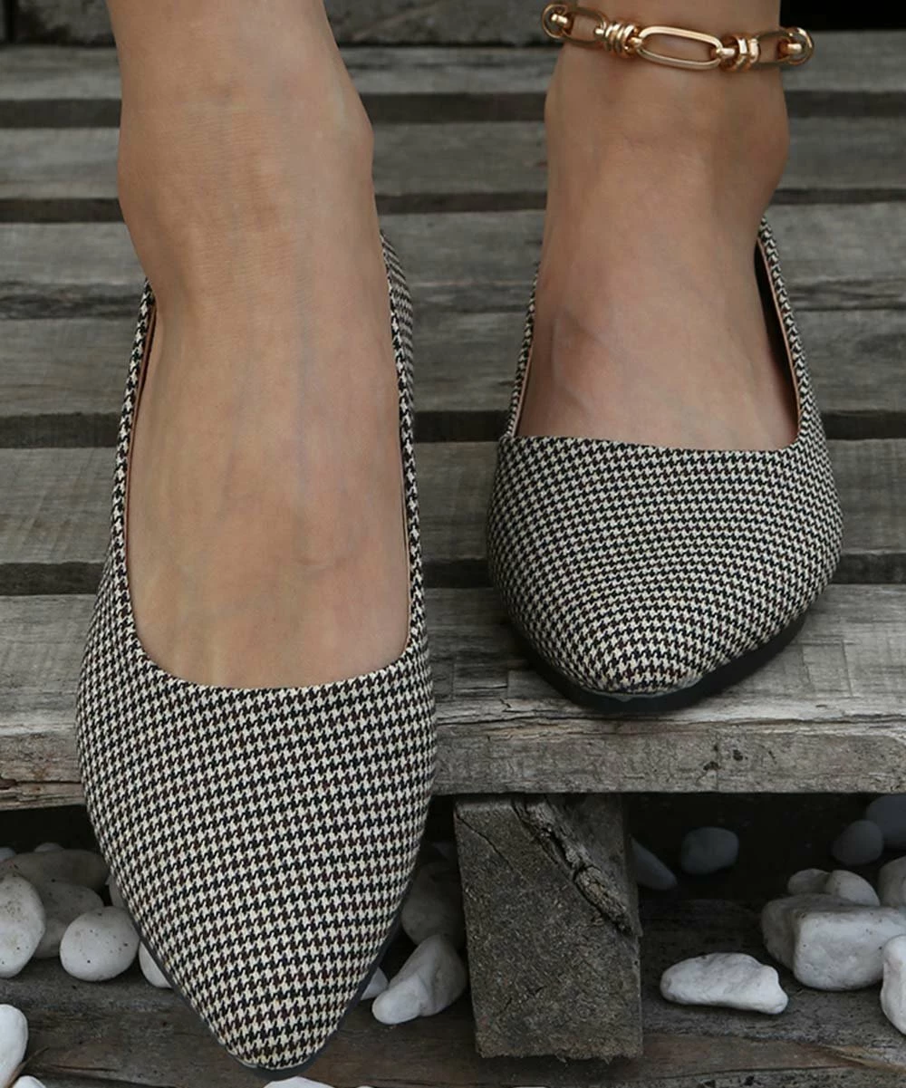 A classic houndstooth pattern gives personality to this pointed-toe pump made with soft and breathable materials.