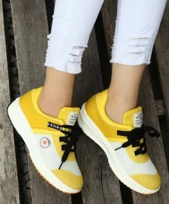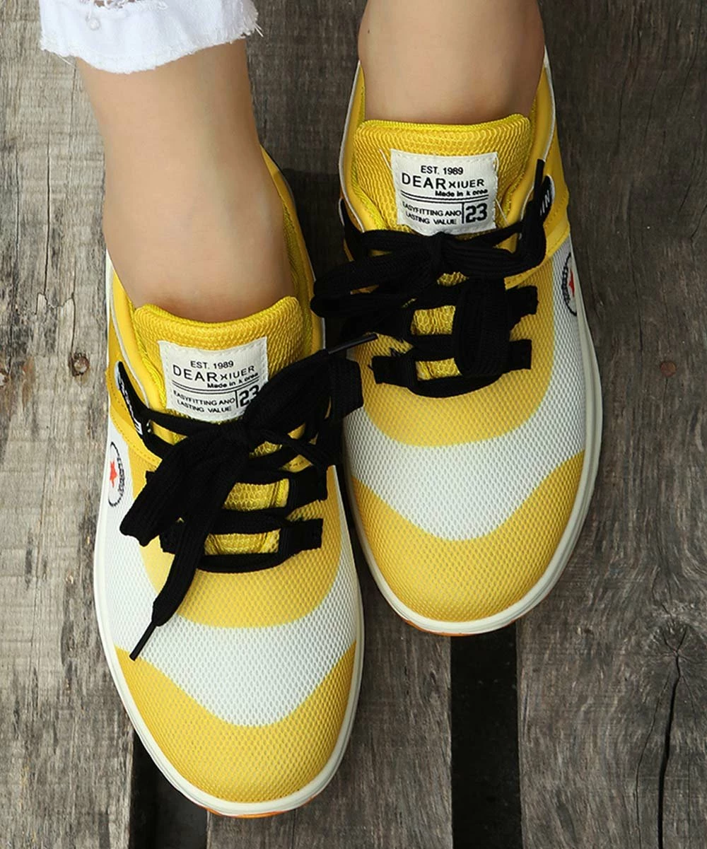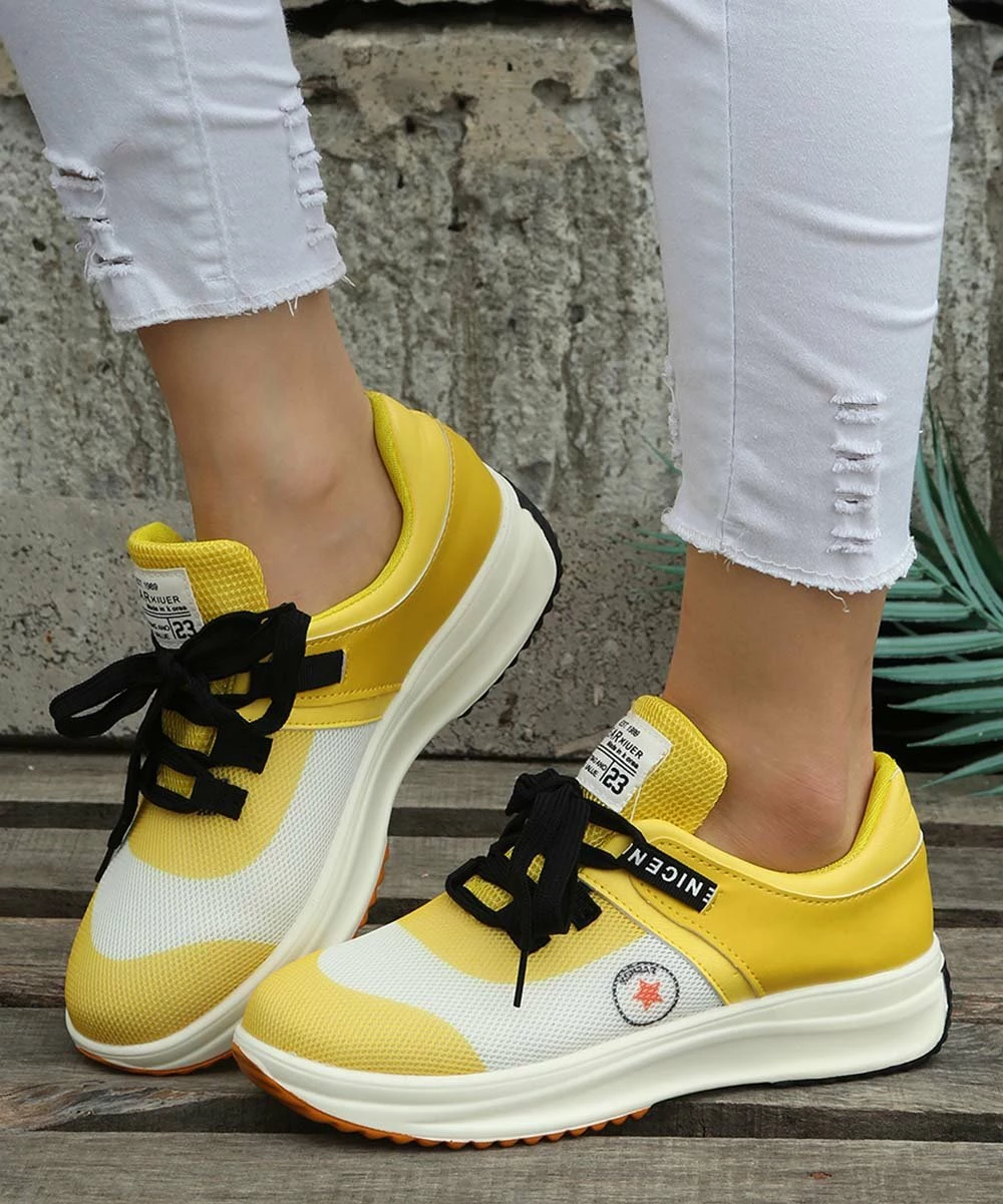 Stay on-trend with these lace-up sneakers that have a color block design and logo accent.